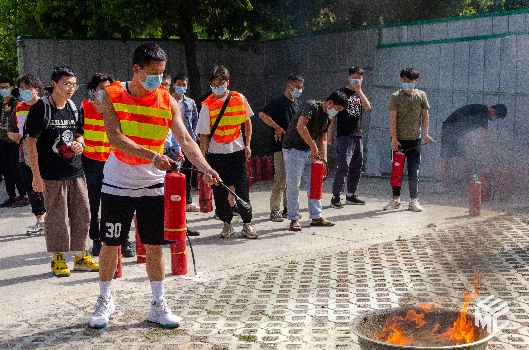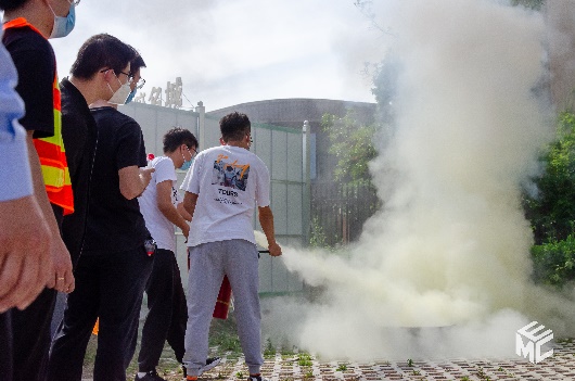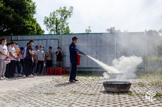 活动第二阶段是应急演练,包括紧急疏散及灭火演练。老师和同学们就地疏散,来到电气馆旁的空地。在这里开展消防灭火演练。在教官的指导下,同学们使用灭火器扑灭火焰。至此,本次活动圆满结束。