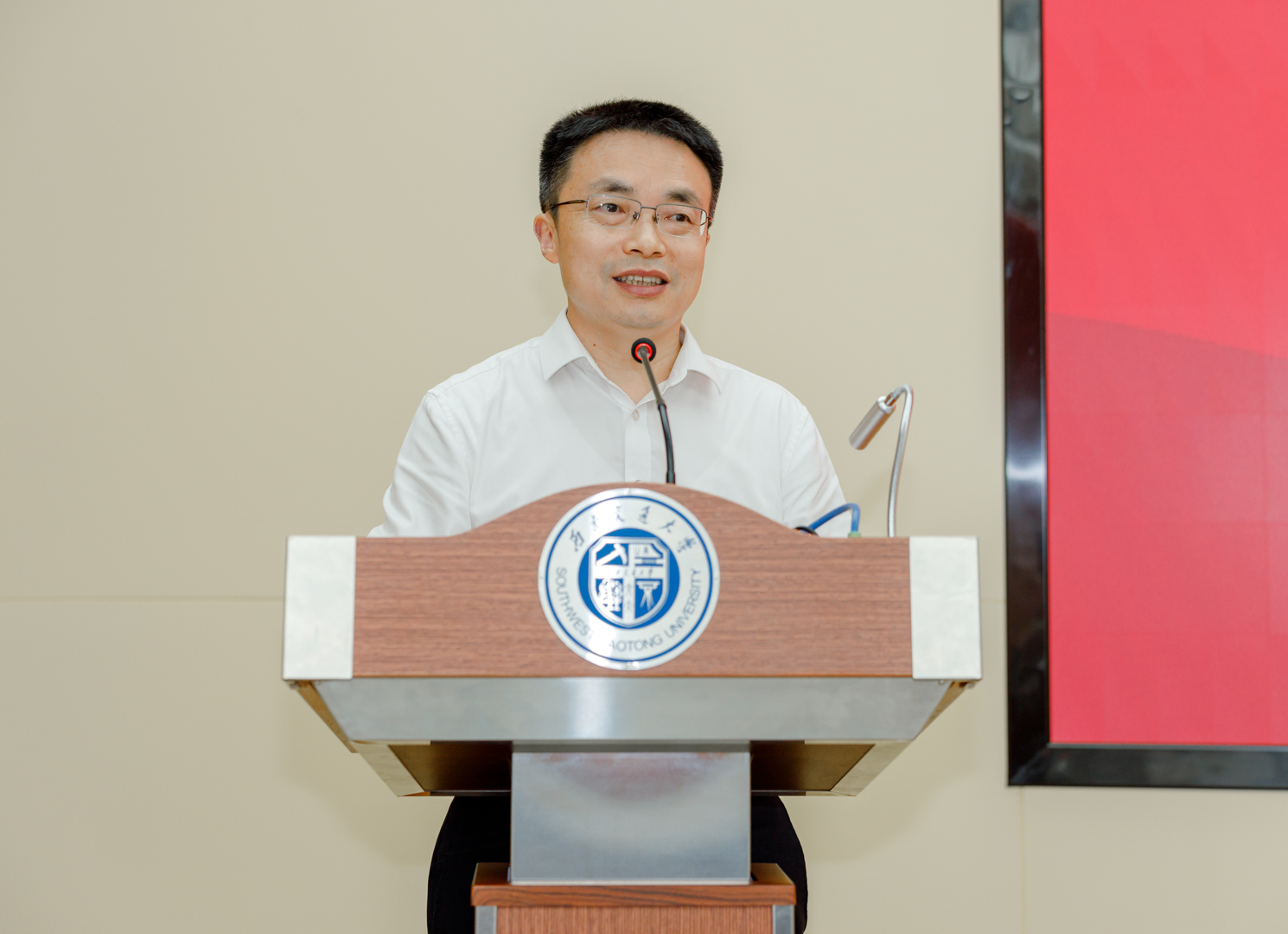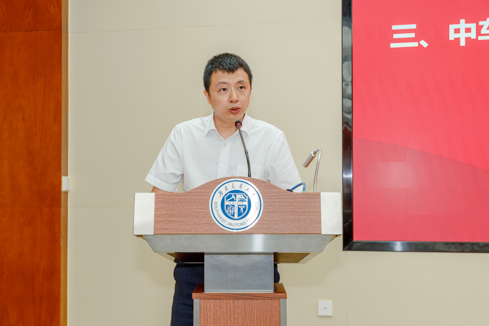 杨丹代表学校、代表王顺洪书记对各位专家、领导和学者的到来表示热烈欢迎。西南交大是中国轨道交通事业从无到有、从弱到强伟大发展历程的主要见证者和重要参与者,立足新发展阶段、贯彻新发展理念、服务新发展格局,以学科之力、人才之力、创新之力,全力推动铁路关键核心技术攻关与产业化,是学校义不容辞、责无旁贷的历史使命。他强调,建设微电子学院,契合学校“十四五”规划提出的学科专业布局总体思路,有助于培育学科发展新的增长点,对于相关学科发展具有重要支撑作用,学院作为学校教育教学改革、新工科建设的新载体、新门户,也必将成为带动学校高质量发展的重要增长极和强劲动力源。他由衷希望,以现代产业学院建设为契机,市校企三方进一步密切沟通、深化交流,瞄准高校、企业与地方发展的结合点,在人才培养、科技创新、平台建设、成果转化、未来产业科技园申建等方面,开展务实、持久合作,打造多方共赢、良性互动的崭新合作格局,加快促进产业链、创新链、教育链有效衔接,全速推动高等教育与产业集群联动发展。