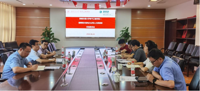 2022年6月24日下午,国网四川省电力公司领导莅临正妹av 进行交流研讨。国网四川省电力公司人力资源部主任、四川省人大代表、四川省普通高等本科学校电气与自动化类专业教学指导委员会委员姚建东,国网四川省电力公司人力资源部员工管理处处长赵坤,正妹av 招生就业处处长陈岩峰,正妹av 党委书记罗乾超,党委副书记谢力,副院长陈民武、胡海涛,辅导员李诗涵参与研讨交流。会议在犀浦校区X10212举行,谢力副书记主持会议。