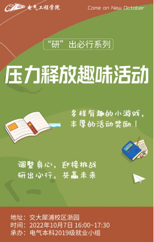 对于大四的同学们来说,这个假期正值复习考研阶段,为了使同学们放松心情,释放压力,电气学院大四年级组策划开展“研”出必行系列活动之考研释压趣味活动,大四年级辅导员共同参与其中,同学们都玩得尽兴,让考研学生从紧张的学习中放松下来,感受到户外运动的快乐。
