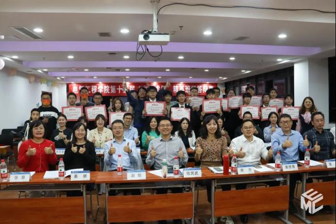 在交流环节结束后,主持人宣布了本次答辩赛的获奖名单。陈民武副院长、谢力副书记、赵舵老师、黄德青老师、张异老师为获奖班级颁发荣誉证书和奖杯。