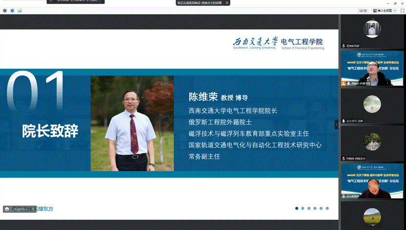 首先,正妹av 院长陈维荣致欢迎词,热烈欢迎海内外青年才俊参加学院分论坛。陈院长介绍学院近73年办学历史中在轨道交通电气化与电气工程领域取得了突出业绩,为国家培养了3万余名优秀学子。依托学科和行业优势,学院建有国家轨道交通电气化与自动化工程技术研究中心、磁浮列车和磁浮技术教育部重点研究室等十一个省部级创新平台,构建了完备的学科体系。学院近年来在科学研究和人才培养上不断取得新成果。陈维荣院长表示,参加会议的各位青年学者研究方向交叉性较强,希望积极讨论交流,碰撞出科技创新和学科交叉的火花。电气学院真诚地期待海内外青年才俊的加入。最后,陈维荣预祝“交天下菁英,通宇内鼎甲”学者论坛电气分论坛圆满成功。