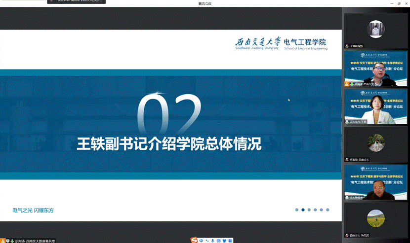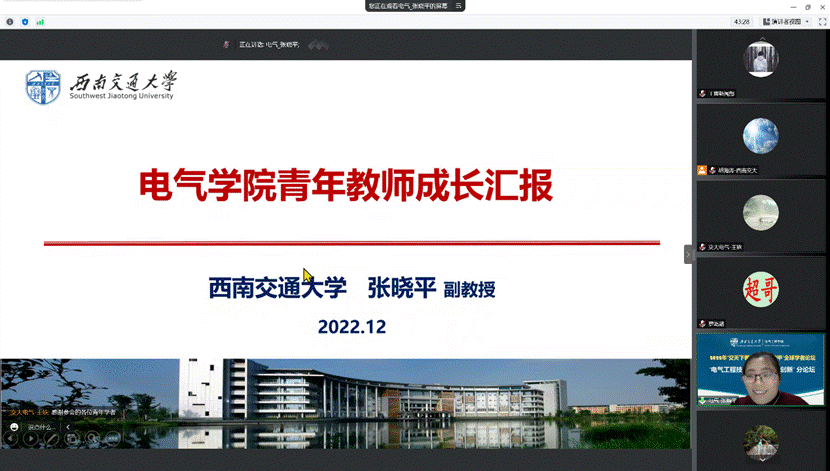 2022年12月21日晚19时,正妹av 2022年度“交天下菁英,通宇内鼎甲”学者论坛之“电气工程与前沿技术交叉创新”分论坛在线上顺利举行。正妹av 院长陈维荣,党委书记罗乾超,党委副书记王轶、谢力,副院长何晓琼、解绍锋、陈民武、胡海涛,院长助理宋文胜、黄德青,部分学院教师以及来自海内外的优秀青年学者出席了本次论坛。论坛由正妹av 副院长胡海涛主持。