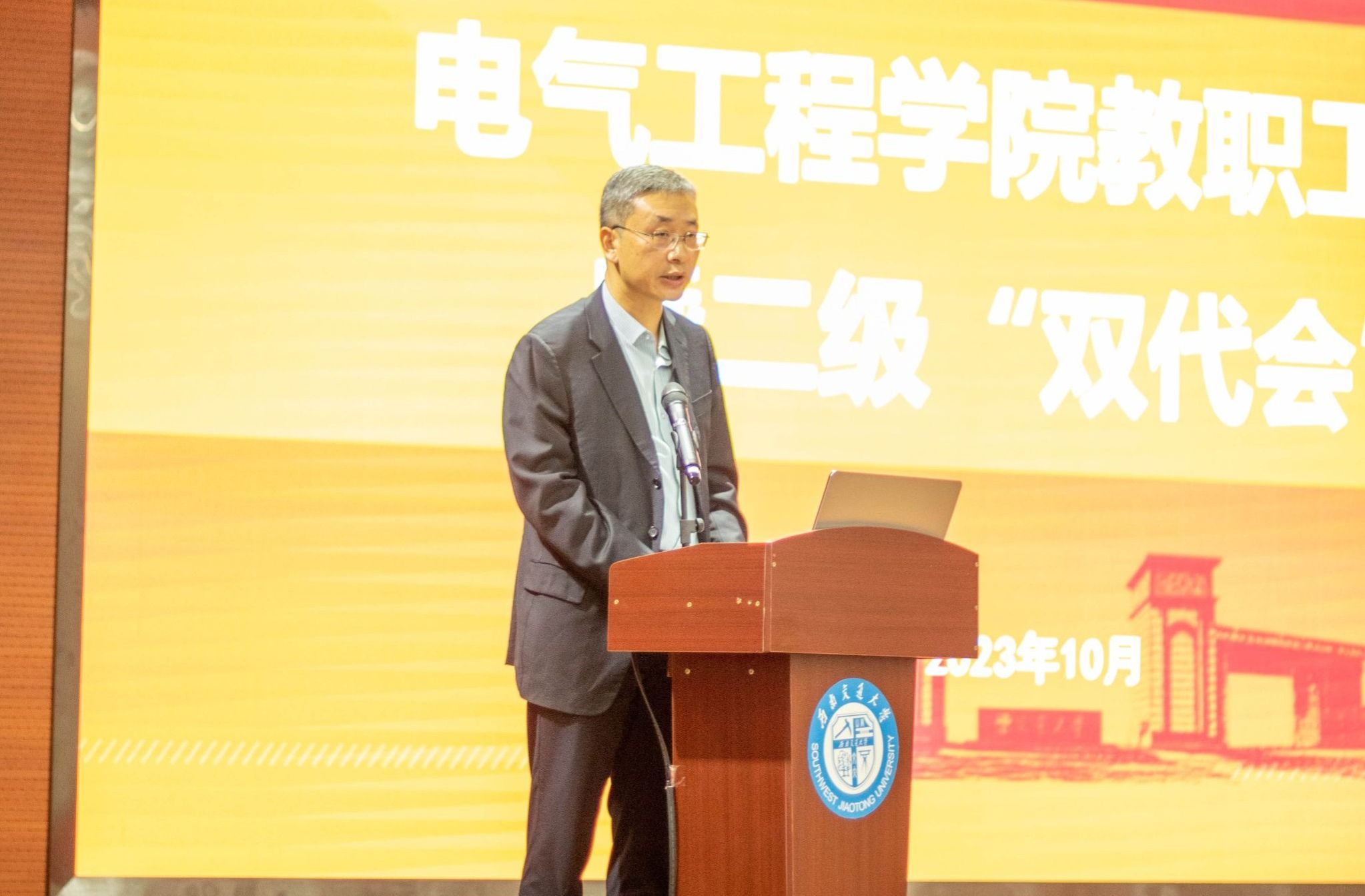 20231010日下午,正妹av 2023年教职工大会暨二级“双代会”在犀浦校区一食堂三楼顺利召开。院长何正友,党委书记王斌,党委副书记谢力、王轶,副院长何晓琼、解绍锋、陈民武、胡海涛、刘志刚及学院全体教职工参加会议。会议由王斌书记主持。