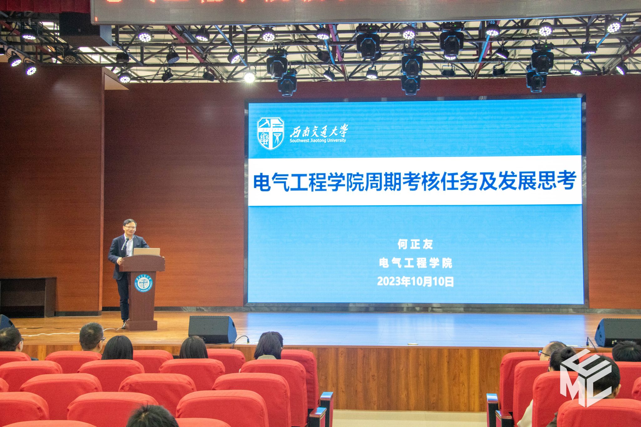 首先, 何正友院长以《正妹av 周期考核任务及发展思考》为题,从新一轮周期考核任务、学院发展成绩、周期目标差距分析等方面对学院的未来发展进行深度分析。何正友院长强调,人才、平台、行业是学院发展中三大互相耦合的决定性因素,在未来,学院要持续巩固轨道交通行业地位,积极响应国家战略,竭力拓展行业领域,将学院发展推向新高度。