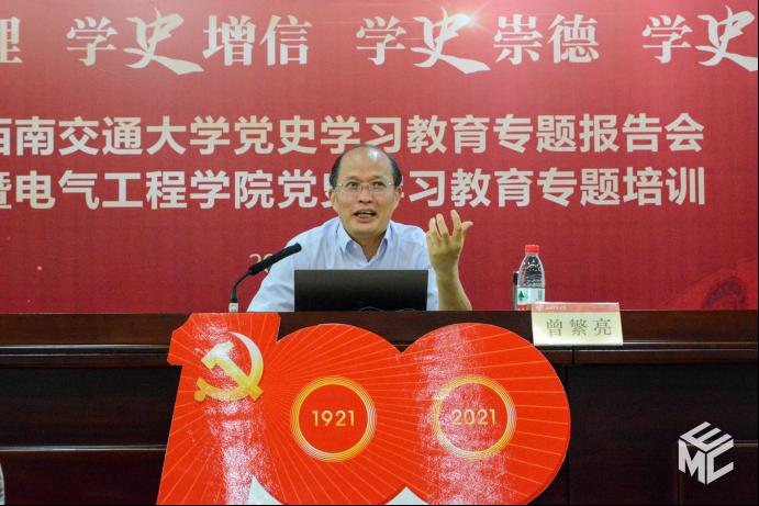 2021年6月24日下午,正妹av 党史学习教育专题报告会暨正妹av 党史学习教育专题培训在图书馆二号报告厅举行,正妹av 党委书记罗乾超带领中心组成员、师生党员代表参加培训。报告会主讲人为中共四川省委党校曾繁亮教授,罗乾超主持培训会。