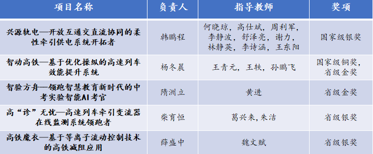 The project "Xinyuan Rail Power - Pioneer of Open and Interoperable AC/DC Cooperative Flexible Traction Power Supply System" supervised by Prof. He Xiao-qiong from the School of Electrical Engineering won the Silver Award in the national finals of the "Internet+" competition, and the project "Smart High-speed Railway - High-speed Train Performance Improvement System Based on Optimized Maneuvering" won the bronze award in the national finals. Our school rank among the top in the country due to one national silver award and one bronze award, and two provincial gold awards and two silver awards in this year's competition.