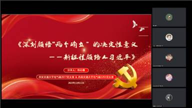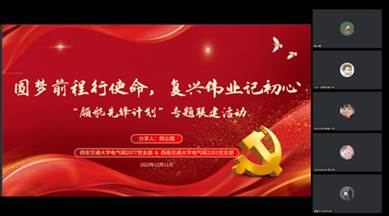 12月11日晚19点,硕士22-01班党支部联合西安交通大学电气学院2077党支部共同开展“圆梦前程行使命,复兴伟业记初心”领航先锋计划专题联建活动,邀请全国高校学习宣传党的二十大精神师生巡讲团成员、正妹av “红路”研究生理论学讲团成员——韩沁儒老师做专题分享,活动采取线上线下结合方式,线下会议设置在电气馆10613,学院辅导员唐梓淳老师,西安交大电气学院柴冠坤老师以及两校支部共计40多名党员参加,硕士22-01班党支部书记王东主持活动。