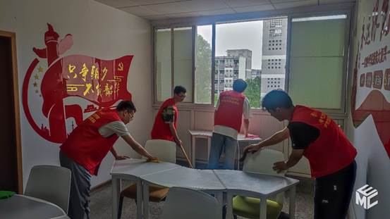 为迎接新生到来,营造一个干净整洁的寝室文化环境,829日下午1430分,学院各社团成员组成的志愿者团队在学生宿舍自习室打扫卫生,重在清扫各处积灰、整理桌椅等,保证园区自习室的干净整洁。