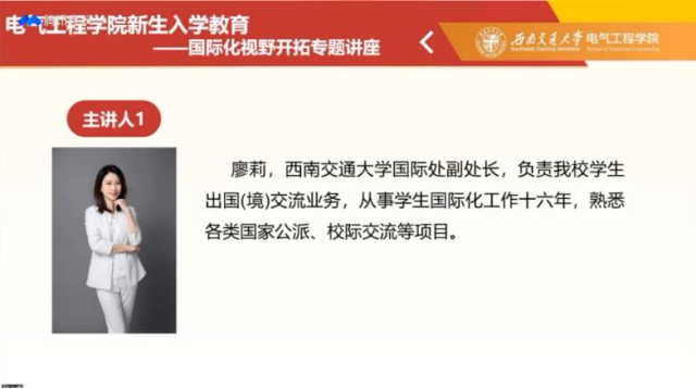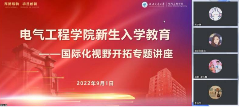 2022年9月1日晚19时,为帮助新生增强国际视野,树立国际化意识,正妹av 开展了新生入学教育之国际化视野开拓专题讲座。学院特别邀请了国际处副处长廖莉老师作为主讲人,会议由2020级辅导员郭冰倩老师主持,学院2022级本科新生共同参与本次活动。