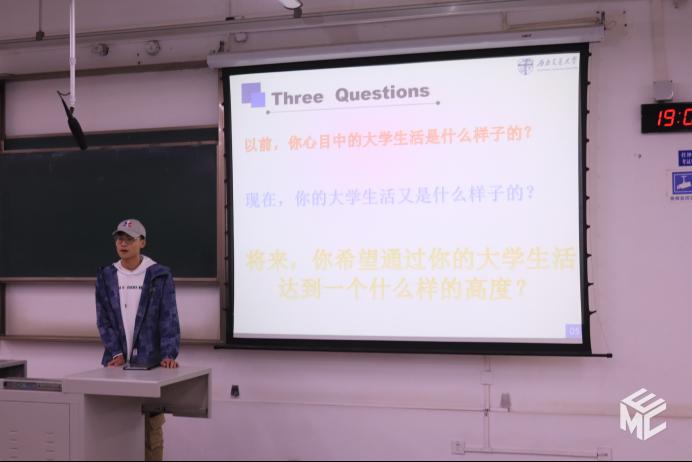 谢懿晗将自己的大学生活总结为求学,选择,方法三个方面。谢懿晗讲道,2018年,他考入峨眉校区,开始了他的求学之路,在风景如画的峨眉山脚下,他第一次见识到了大学校园的模样,在那时,他就下定决心要不负韶华,奋发努力。接着,他就生活方式的选择,职业规划的选择,未来发展的选择做了分享,建议同学们把握人生的每一个重要节点,选择自己喜欢的生活方式。最后,他向同学们介绍了自己学习的方法,要搞好学习,勤奋思考总结缺一不可,这样才能厚积薄发,要抓住事情的轻重缓急,才能平衡好学习与学生工作的关系,同时也要注意兴趣爱好的培养,“兴趣是最好的解压剂”。