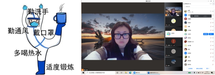 随着秋冬季节的到来,新冠肺炎疫情防控压力陡增,进入11月,成都市内再度出现了本土疫情,防控工作再次敲响了警钟。为引导同学们正确认识疫情,了解疫情,做好防控疫情的准备,11月5日晚19:30,正妹av 硕士2021级10班同学以云见面的方式开展了“疫情防控,战‘疫’有我”主题班会,提醒大家严格重视本次疫情,保护自身的安全。