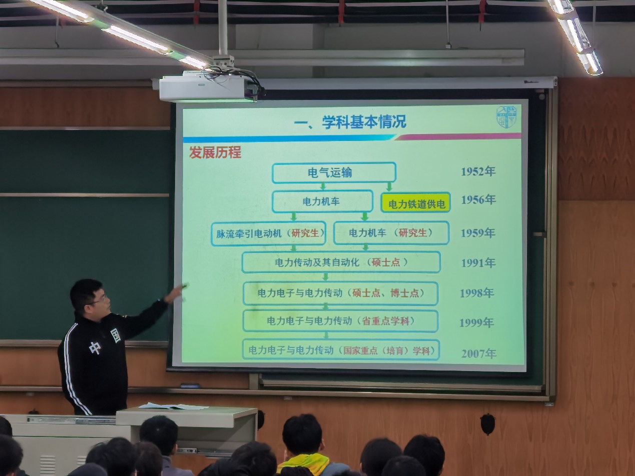 会上,宋文胜老师详细地介绍了“电力电子与传动控制”专业方向的学科发展的发展历程、师资队伍、人才培养、科研平台,并重点介绍了以电力电子为核心的相关课程内容、培养目标以及毕业去向等同学们关心的问题。