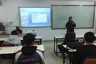 活动开始,三位留学生和本班同学都依次用英语进行了自我介绍,大家进行了简短的交流沟通。Abebe同学为我们介绍了埃塞俄比亚的语言、美食、建筑、服装、舞蹈等人文与自然风光。其中,他特别提到了他们的父亲河尼罗河以及东非大裂谷等自然风光。在民族文化方面,Abebe还介绍了埃塞俄比亚语言的字母,与班上同学积极互动,并用埃塞俄比亚语言书写同学们的名字。