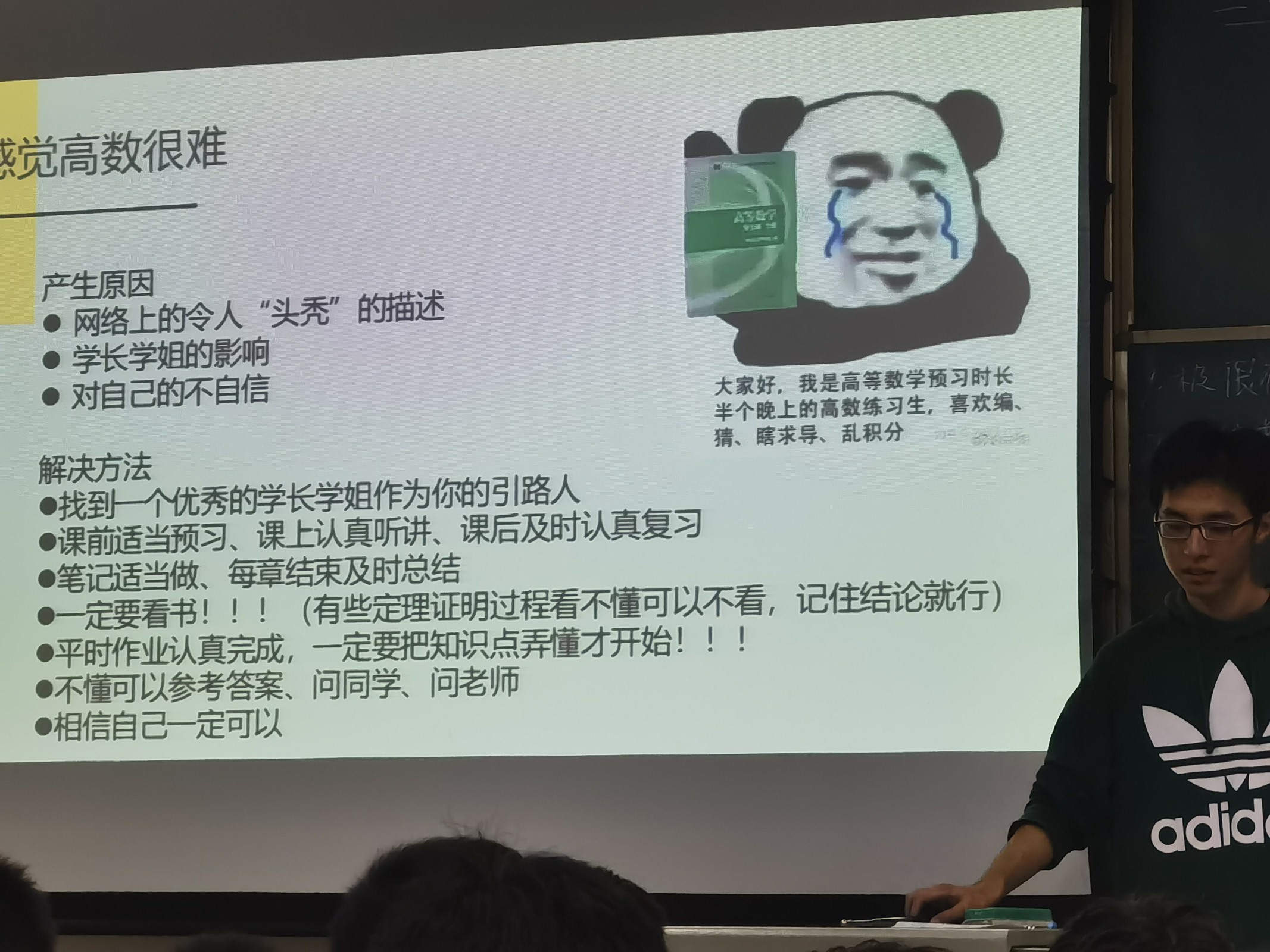 第四期的主讲人为2019级兰宇田同学,他详细地为大家讲解了线性代数的学习方法与应试技巧,建议大家要重视学习笔记整理和习题积累,学会举一反三,把平时遇到的好题与错题做上标记,方便期末复习,提高学习效率。对于大学学习和生活,兰宇田还谈到了时间管理的重要性,他从个人学业、班委工作、兴趣爱好等方面与同学们展开讨论为大一的同学们应该如何规划大学生活提供了一个明确的思路。