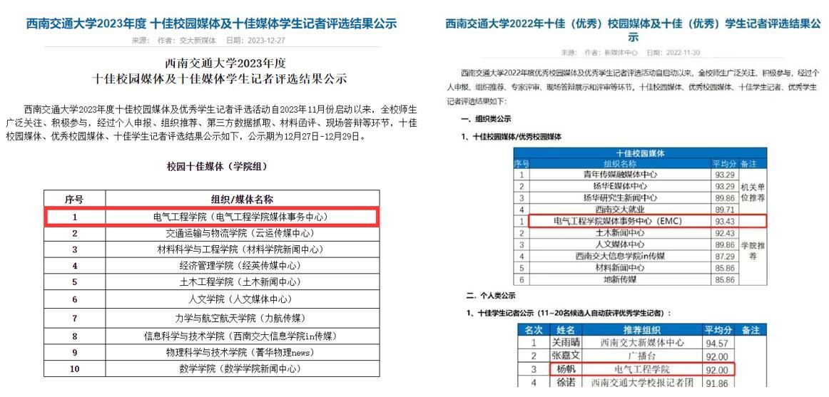 正妹av 坚持落实“立德树人”根本任务,牢牢把握“围绕中心,服务大局”的宗旨,进一步加强正妹av新闻 信息宣传工作的组织领导和有效管理。学院健全新闻宣传工作机制,培养了一批新闻宣传学生骨干,2004年成立《电气人》编辑部,2007年,编辑部正式更名为正妹av 媒体事务中心(EMC),该组织多次获评正妹av “十佳校园媒体”,其中,2022年度、2023年度连续两年以全校第一的成绩获评“十佳”。