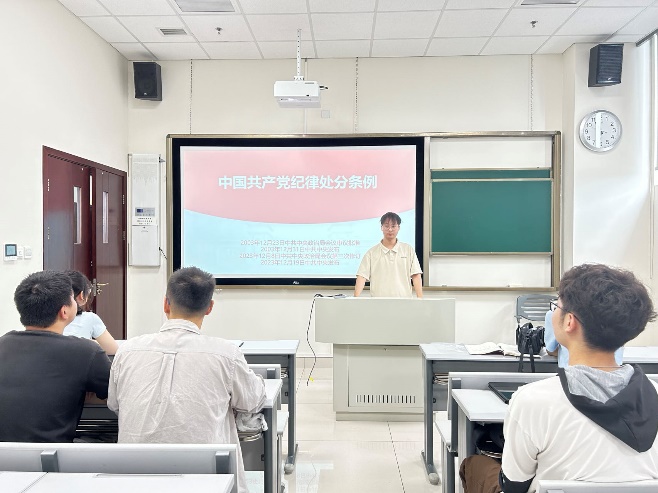 2024年5月到7月,硕士2023级-04班党支部将学习《中国共产党纪律处分条例》(以下简称《条例》)视为党支部成员的必修课、常修课,多次开展“深入学习《条例》”系列活动,通过学习,党支部全体成员在这两个月中全面系统的将《条例》中十一章一百三十三条内容进行了深入理解和领会。