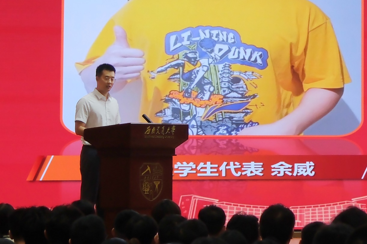 导师代表、电力电子与电力传动系副系主任杨平教授代表学院全体导师,向2024级研究生新生表示最热烈的欢迎和最衷心的祝贺。作为未来的同行者,杨平教授向同学们分享了三点感悟:第一,研究生要自强不息,扬交大精神;第二,研究生要求真务实,攀科研高峰;第三,研究生要志存高远,担时代重任。最后,杨平教授祝福同学们在学术科研路上勇敢前行、自强不息、求真务实、志存高远,成为自己最想成为的人。