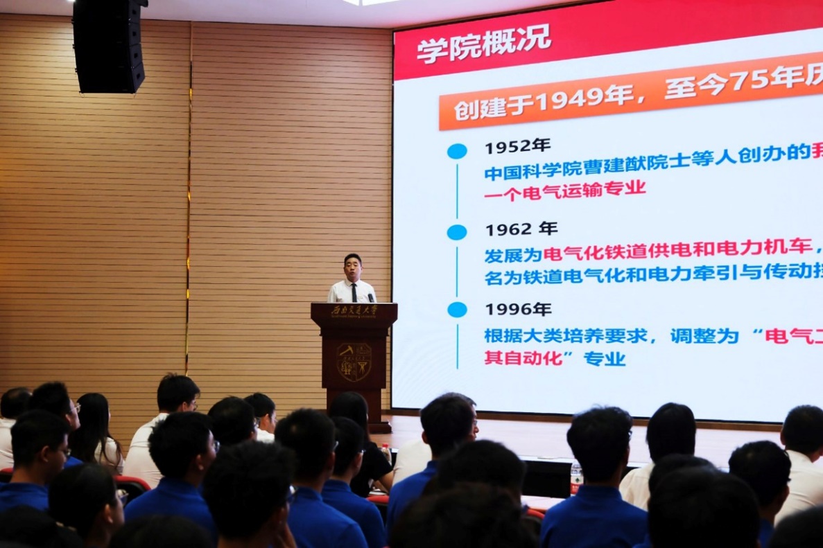 随后,正妹av 院长马光同以“文脉悠远,电气之光”为主题发表讲话。马光同院长从辉煌业绩、雄厚师资、学科实力、科研水平、创新成果等方面介绍了正妹av ,并从三个方面向全体硕博新生提出期许:第一,新时代研究生应以追求真理为乐,把理想刻进骨髓,做硬核研究者,许“上等愿”,做“大”学问;第二,新时代研究生应以破难攻坚为乐,把能力握在手中,积蓄足够的“势能”,做‘新’学问;第三,新时代研究生应以勤勉躬行为乐,把担当扛在肩上,打磨奉献与合作精神,扎根新发展阶段的实践沃土,发现真问题,解决真问题,做‘真’学问。最后,马光同院长希望同学们传承“厚德载物、求是创新”的电气精神,并坚持国家为先、人民至上、创新发展、实事求是的科研精神,练就过硬本领、书写精彩人生。