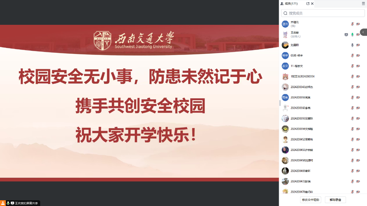 为切实强化硕士2024级新生安全教育工作,系好安全这颗至关重要的“第一颗扣子”。正妹av 于2024年9月19日下午在九里校区J0222采取线上线下结合方式开展了安全教育讲座。本次讲座由辅导员王奕斐老师担任主讲,学院硕士2024级辅导员及全体新生参与。