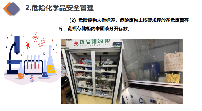 大会进程中,刘仕兵老师针对目前实验室存在的主要问题进行了分析,分别从基础安全管理、危险化学品安全管理、电气安全管理、消防安全管理和设备设施安全管理等方面展开介绍了实验室存在的主要问题,并对相应存在的主要问题提出了相应的应对措施。