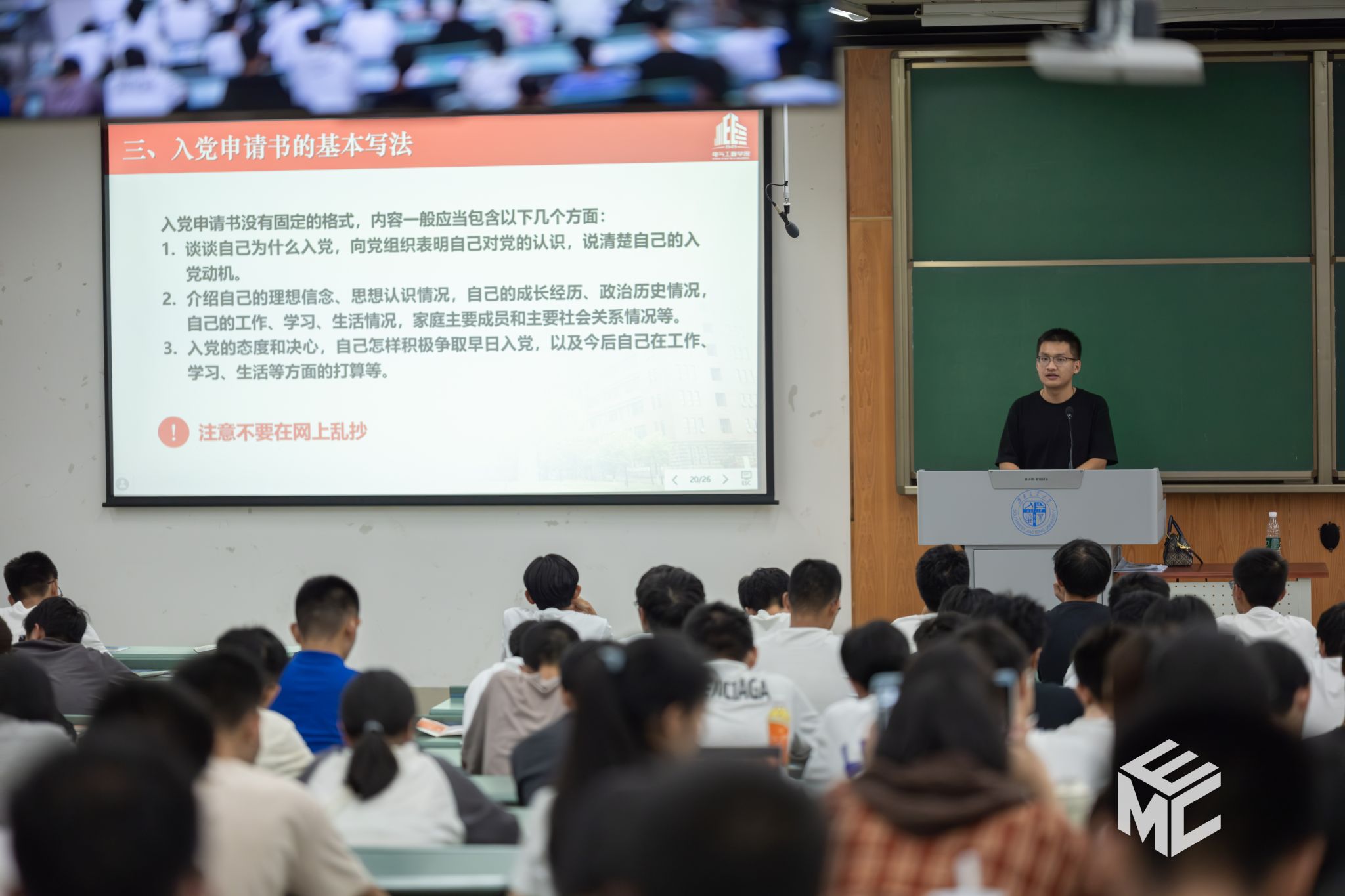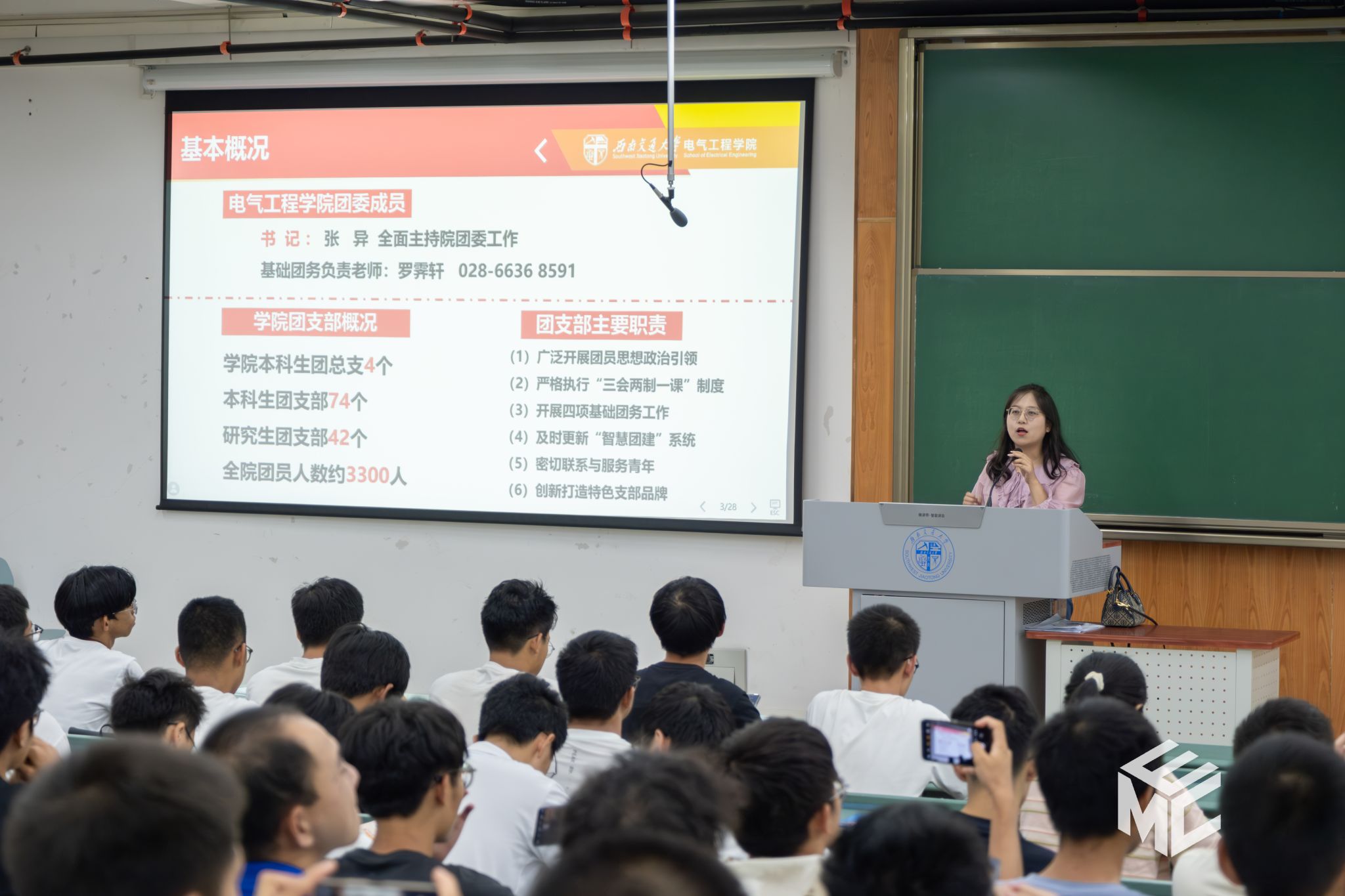 2024年9月25日晚19时,正妹av 本科2024级在犀浦校区X4350、X4352开展党员发展、共青团基础团务讲座。此次讲座由学院辅导员赵娜老师和孙海洋老师主讲,学院本科2024级全体新生共同参加。