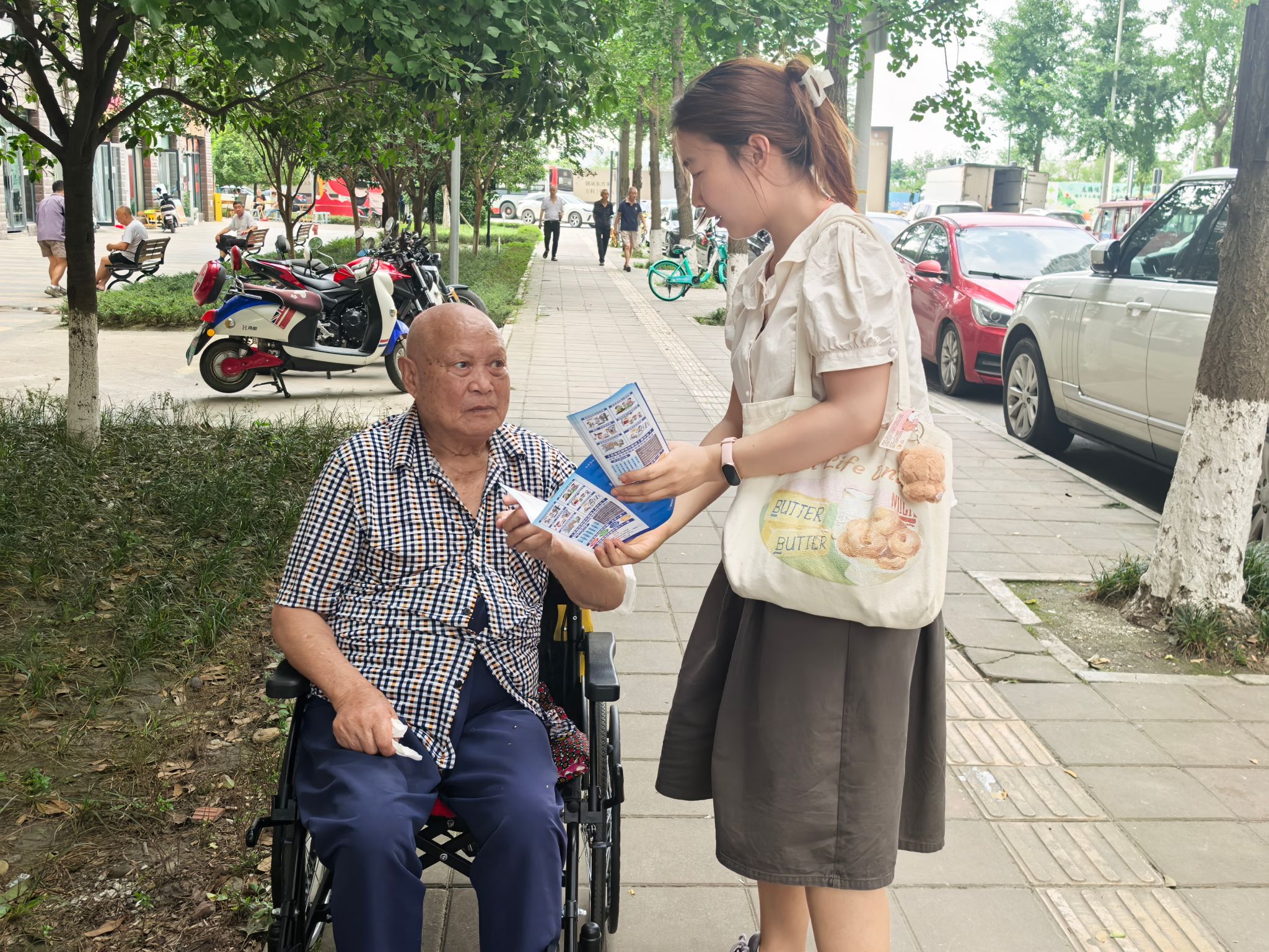 活动当天,在成都郫都区方桥嘉苑社区内,开展了“一对一”智慧助老环节。正妹av 电气硕士24级7班党支部的每名党员对接1-2位老人,进行分模块教学。