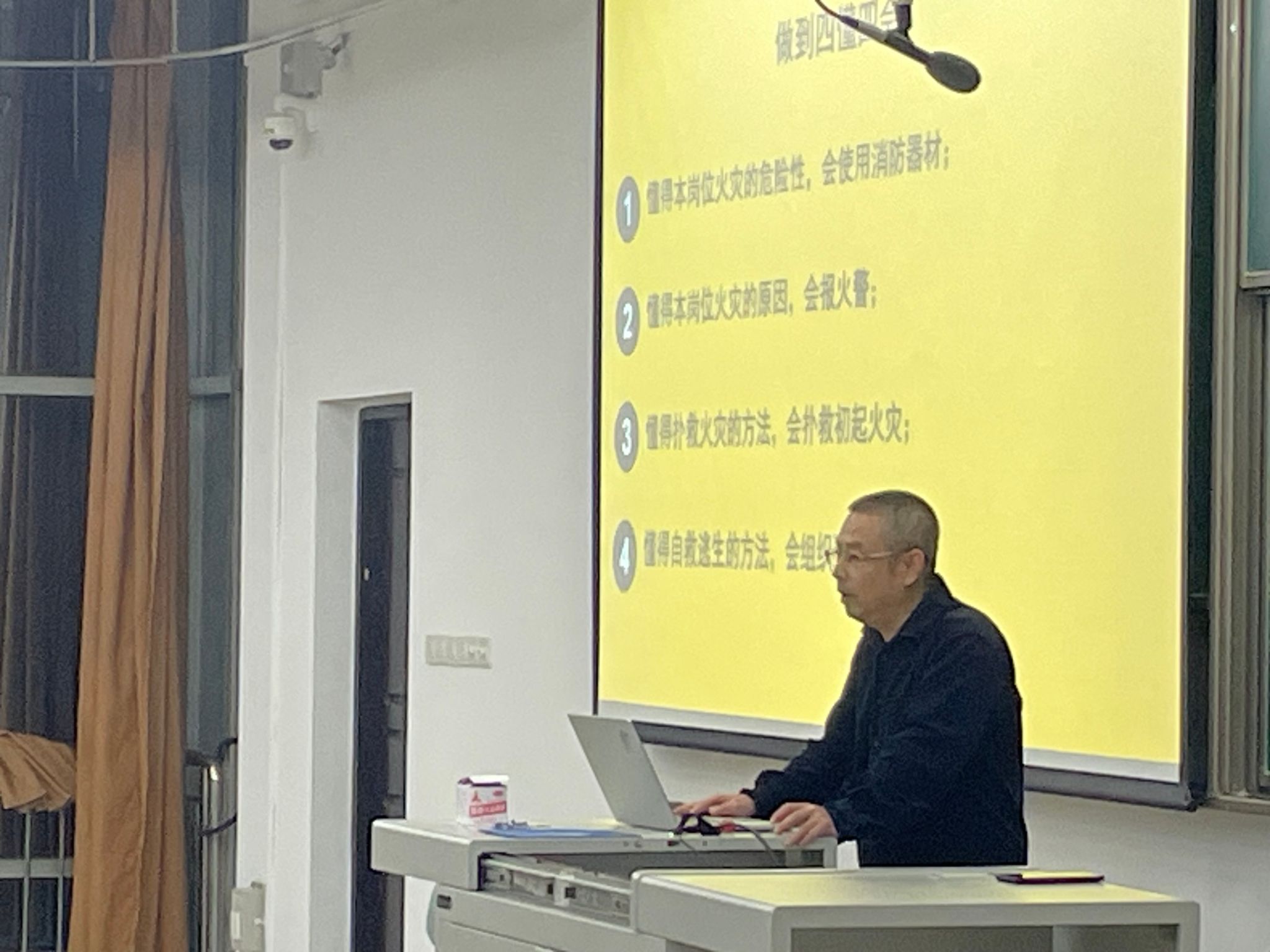 首先,李老师结合一些火灾案例,形象、生动、全面的给大家进行了讲解,用最真实的案例给大家敲响消防安全的警钟,并强调消防安全的重要性,然后带领大家一起学习消防安全常识和防范措施,介绍了日常生活中应注意的消防安全细节。通过现场演示灭火器的构造和正确使用方法、防毒面具的使用、火灾现场逃生自救常识等消防知识作了详细的讲解。