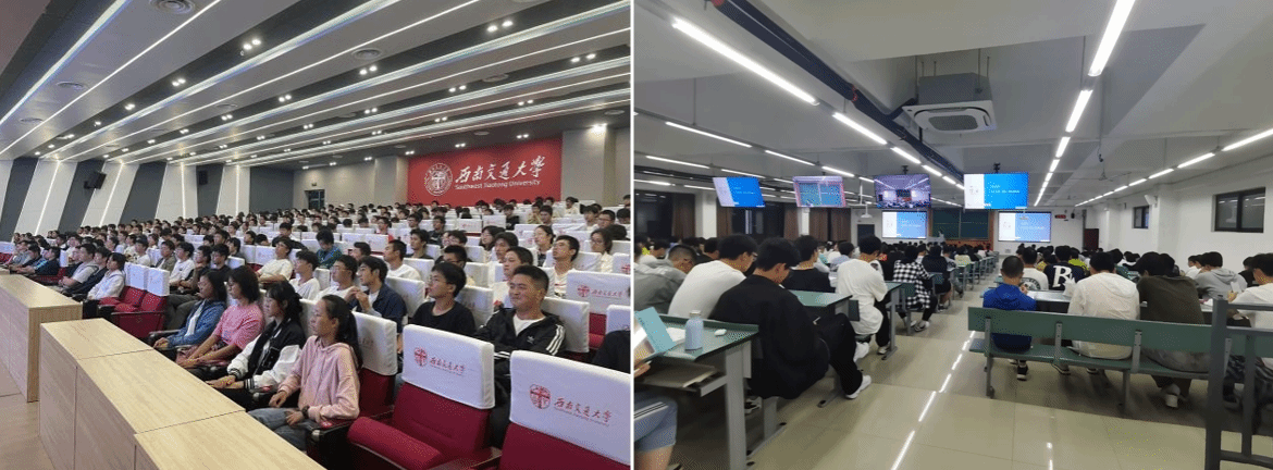 2023年9月25日晚19:30,正妹av 本科2023级新生开展校史校情专题讲座,本次讲座在犀浦校区X4352和一号报告厅同步开展,旨在让新生同学们了解学校的校史校情。本次讲座由学校大使团成员主讲,本科2023级辅导员及全体新生共同参加。