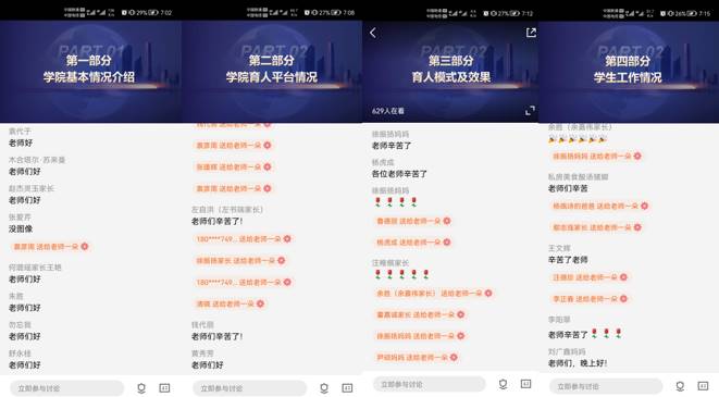 会议上,家长们纷纷留言表示对学院工作的支持与肯定,表示将会与学院携手合作为学生的成长保驾护航。在会议中,谢力还为家长提出了建议,孩子进入大学后,家长应转变教育观念与方式,走出教育误区,尊重学生的自主安排和想法。