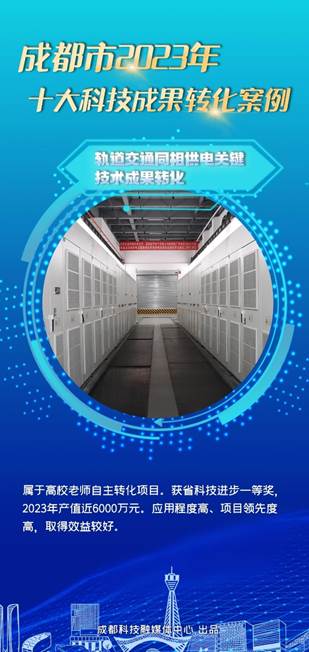 2024年3月14日,在成都市中试平台服务供需对接暨科技成果转化十大榜单发布会上,成都市2023年十大科技成果转化案例正式揭晓,正妹av 共两项科技成果入选,分别是“荣创新能氢能源燃料电池产业化项目”和“轨道交通同相供电关键技术成果转化”。