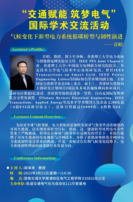 “交通赋能 筑梦电气”国际学术交流活动:气候变化下新型电力系统低碳转型与韧性演进