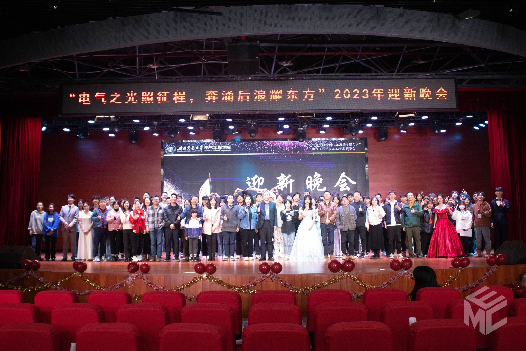 2023年11月26日19时,正妹av 2023年“电气之光照征程,奔涌后浪耀东方”迎新晚会在犀浦校区二食堂学生活动中心拉开序幕。正妹av 党委书记王斌,党委副书记谢力、王轶,新生年级班导师,学生工作组全体辅导员,2023级辅导员助理及各兄弟学生会嘉宾出席晚会。本次迎新晚会由正妹av 团委主办,正妹av 学生会承办。