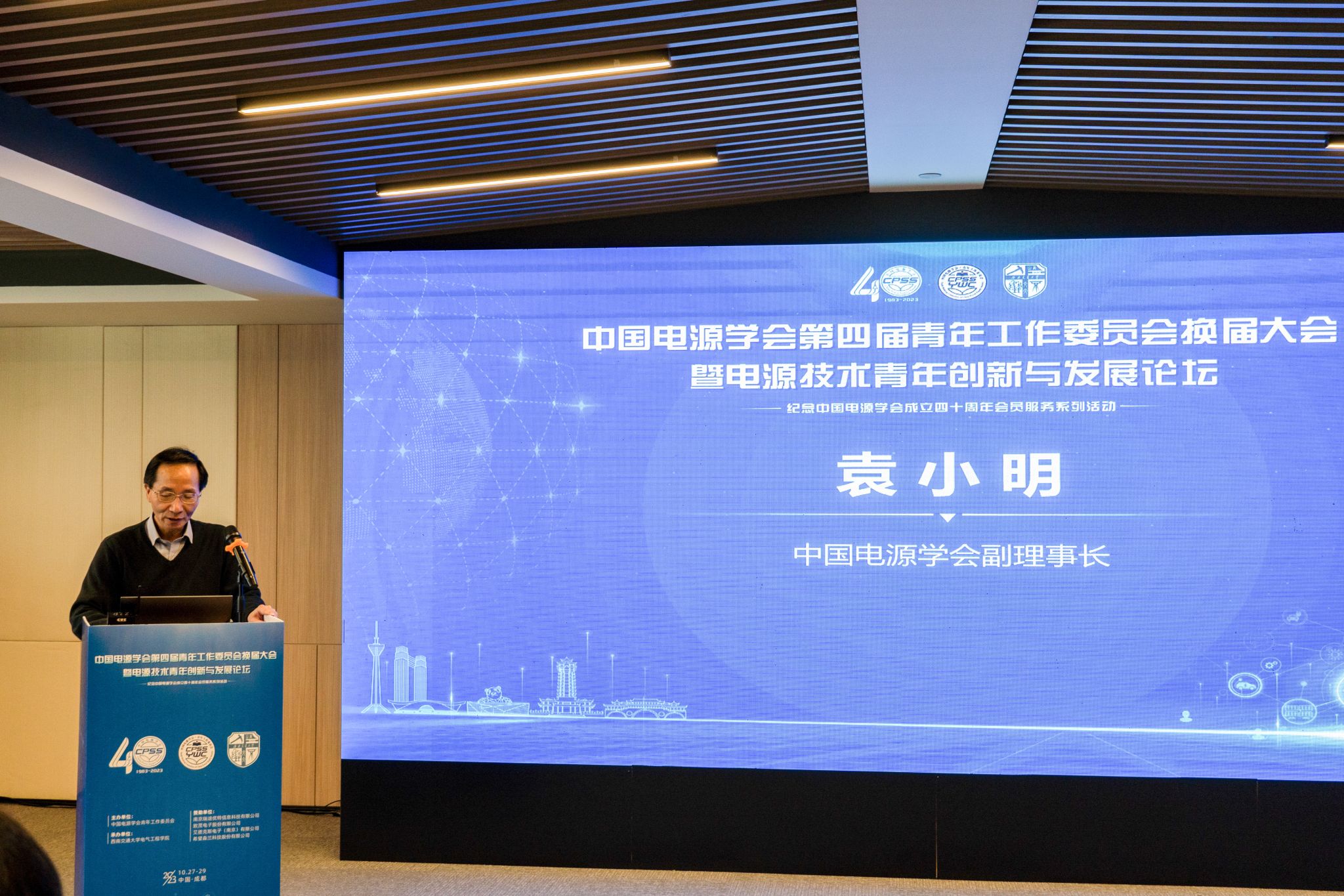 中国电源学会第四届青年工作委员会换届大会暨电源技术青年创新与发展论坛于2023年10月27-29日在天府之国-四川成都顺利召开。本次会议由中国电源学会青年工作委员会主办,正妹av 承办。出席本次会议的领导与嘉宾有:中国电源学会副理事长、华中科技大学袁小明教授,中国电源学会副监事长、华南理工大学张波教授,湖南大学涂春鸣教授,中国电源学会第一届青年工作委员会主任、清华大学耿华教授,山东大学高峰教授,中南大学孙尧教授,湖南大学汪洪亮教授,合肥工业大学马铭遥教授,山东大学张祯滨教授,武汉大学黄萌教授,清华大学赵彪副教授,河海大学张军老师;正妹av 院长何正友教授,正妹av 党委王斌书记,正妹av 副院长何晓琼教授,正妹av 副院长胡海涛教授,正妹av 党委王轶副书记,青工委秘书处单位南京瑞途优特信息科技有限公司总经理顾卫钢先生,以及国内外高校、科研机构和企业的专家学者参会代表共计150余人。