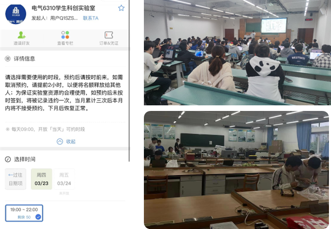 校赛阶段,学院积极做好宣传、组织、动员工作,多次开展大赛的宣讲、培训和指导活动,同学们参赛热情高涨,超400人报名参赛;为了给同学们提供培养创新能力和实践锻炼空间,学院特开放“6310实验室”,学生通过小程序进行每日预约签到,同时辅导员进驻实验室值班,确保实验室安全的同时加强与学生的沟通交流,了解学生困难,为学生提供指导和帮助。