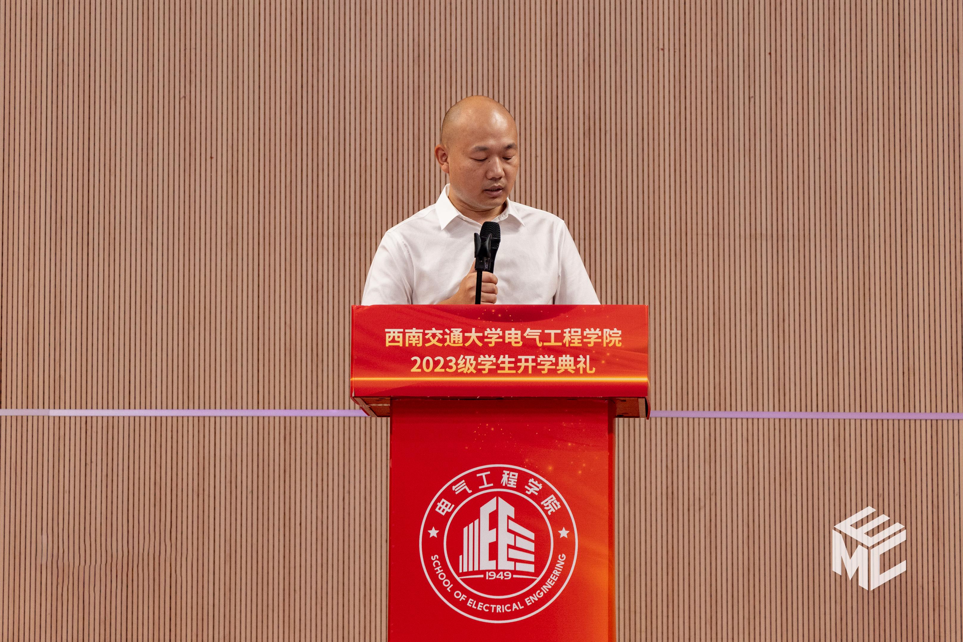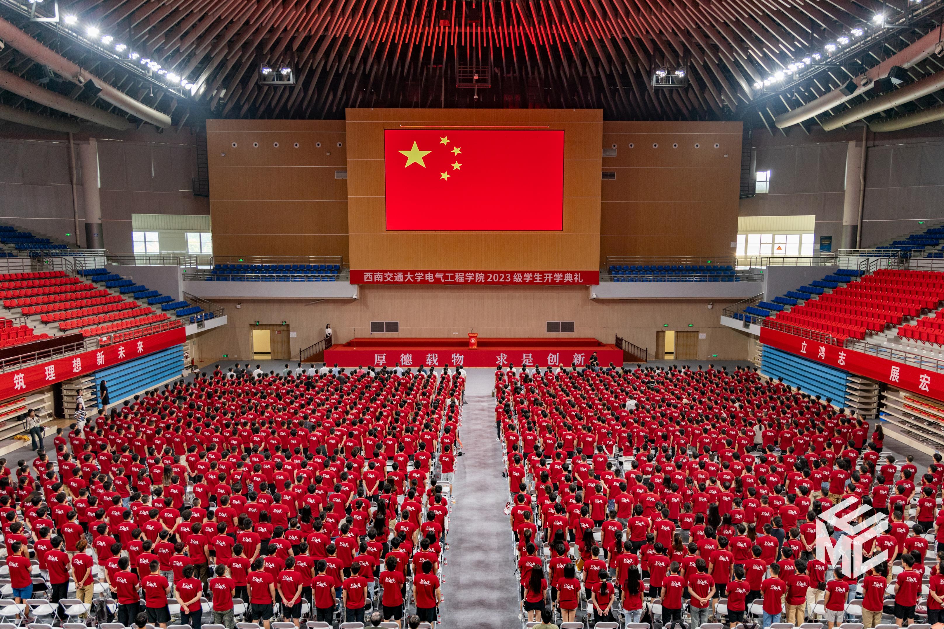 2023年93日上午10点,正妹av 2023级学生开学典礼在犀浦校区飞碟体育馆顺利举行。正妹av 院长何正友,党委副书记谢力、王轶,副院长陈民武、胡海涛、刘志刚,院长助理黄德青,电力工程系系主任吴积钦,电工电子系系主任卿安永,办公室主任樊兵兵,学生支持办公室主任张婷婷,团委书记张异,2023级本科班导师,2023级全体本硕博新生参加开学典礼。典礼由谢力副书记主持。