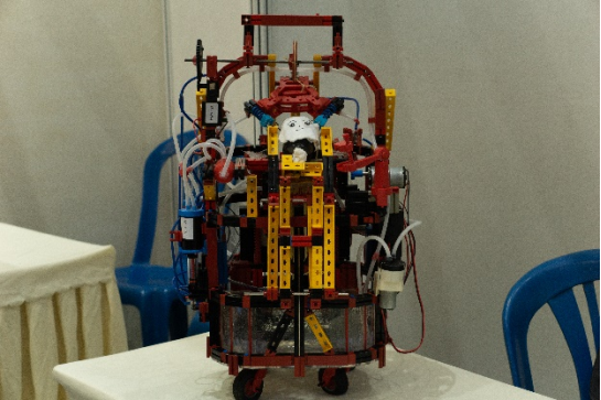 主题二魔方机器人旨在“挑战更快”,参赛队伍参照人类魔方竞速规则,设计制作魔方机器人,综合运用机械、电子、信息和自然科学知识,实现比人“计算”更快,“翻动”更加灵活迅速的目标。参赛队伍现场调试代码,指挥机器人演示魔方还原过程,挑战更快的速度。