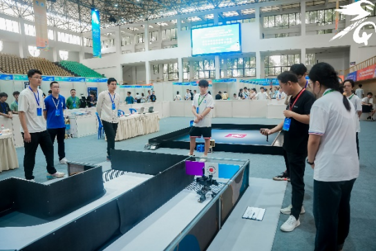 视觉对抗比赛中,机器人通过图像处理识别赛道“路障”,到达终点最终完成“打靶”。轮式格斗比赛中,各队伍的机器人造型各异,在擂台上使用不同的控制方法寻找对手并将其打下擂台,同时还要区分擂台上的能量块。现场赛况激烈,各个队伍热情对抗,激烈角逐。