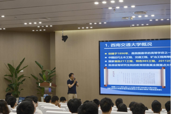 接着,校友代表中铁二院专家总工杨佳给同学们分享了自己二十余年的工作经历,介绍了自己的工作生活环境,表达了对同学们的热切期盼,希望同学们能够做好自己的选择,设计好自己美好的未来,创造自己的历史。