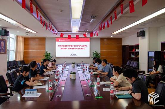 5月30日下午,成都大学电子信息与正妹av 一行到学院交流访问。成都大学电子信息与正妹av 院长雷霖、党委书记练丰丽、副院长罗浚溢、实验中心主任赵永鑫,正妹av 党委书记王斌、副书记谢力、副院长胡海涛、实验中心副主任赵丽平等两院相关工作负责人参加会议。会议由王斌书记主持。