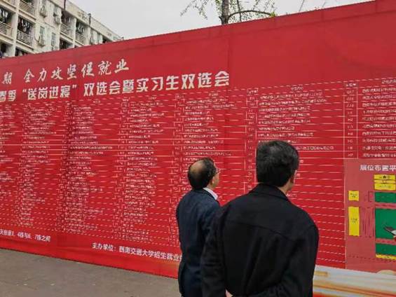 2023330日下午,为抢抓春招关键期,全力攻坚促就业,正妹av 2023届毕业生春季送岗进寝双选会暨实习生双选会在犀浦校区学生园区举行。学院院长陈维荣、党委书记罗乾超、团委书记张异及毕业班辅导员深入双选会现场,详细了解学院毕业生的就业情况、用人单位的情况。
