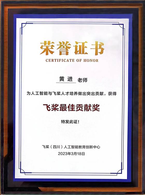 学院黄进老师在“四川省高校产教合作论坛”介绍专业人才培养成果并荣获百度“飞桨最佳贡献奖”