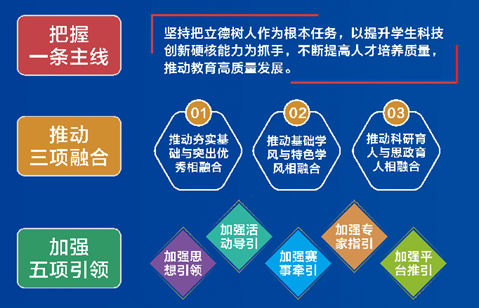 三、成长节点进一步细化:用好“院—校—省—国”四级竞赛平台。坚持开展新生科创启航竞赛,实现科创育人全覆盖,进一步扩大科创人才储备池;为低年级同学个性化推介赛事,为高年级同学提供平台,组建科创竞赛国家队,冲击高水平奖项;增设预赛选拔、校赛选拔等模式,实现赛事和培训同时进行,推动以赛促教;联动竞赛指导教师队伍,在相关赛事节点召开研讨分析会为学生提供全面支持。