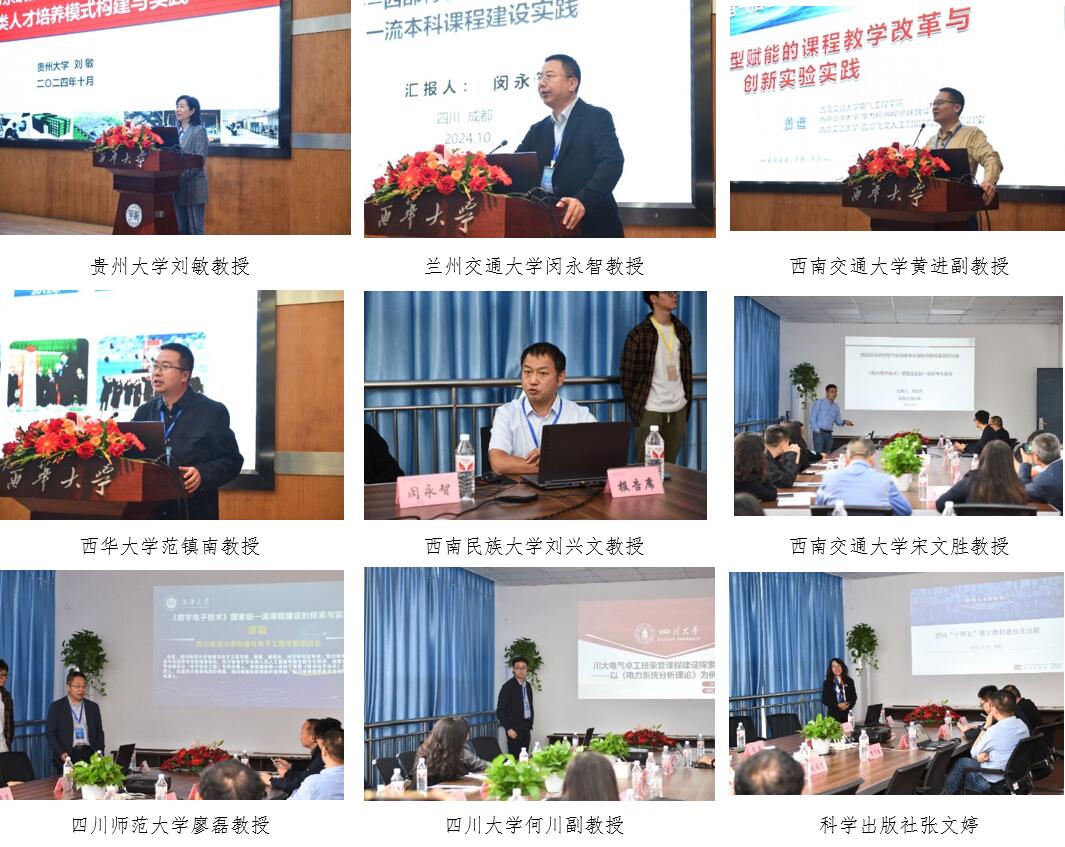 在主题报告会上,多位专家与学者带来了深度且精彩的分享,为与会者呈现了教育的最新探索与实践。贵州大学刘敏教授介绍了面向新型电力系统而提出的“德育并举、虚实结合”电气类人才培养模式。兰州交通大学闵永智教授分享了电气测试技术国家级一流课程的建设实践,通过实例展示了高水平课程建设所取得的显著成果。正妹av 黄进副教授通过介绍AI大模型在课程教学改革与创新实验中的赋能作用,深入探讨了新技术如何为教学带来前所未有的变革与前景。西华大学电气与电子信息学院范镇南教授详细讲述了电气工程及其自动化国家一流本科专业建设的实践经验。西南民族大学刘兴文教授、正妹av 宋文胜教授、四川师范大学廖磊教授和四川大学何川副教授也分别就电气信息类专业建设和一流课程建设分享了宝贵经验。科学出版社张文婷详细介绍了“十四五”数字教材建设的定义及优势,她表示将致力于做好顶层设计,锤炼精品教材,以推动教学的便捷化与高效化。