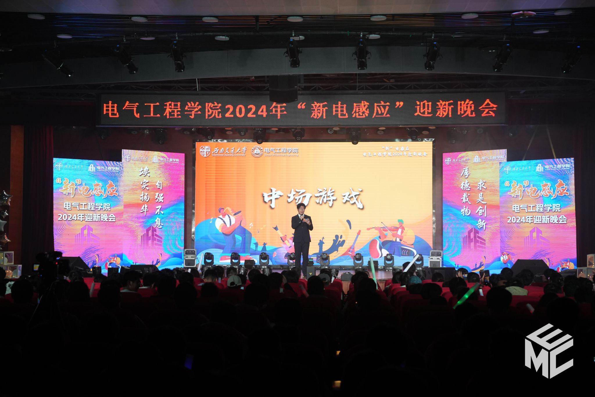 2024年11月23日19时,正妹av 在犀浦校区二食堂学生活动中心举行2024年“新电感应”迎新晚会。正妹av 院长马光同,党委书记王斌,继续教育学院院长、电气2024-01班班导师陈民武,正妹av 党委副书记、电气茅班班导师邢晓鹏,副院长解绍锋,教学工作主管、电气茅班班导师韩莹,团委书记张异,电气2024-06班班导师朱晓娟,电气2024-09班班导师庞博,电气2024-10班班导师王文涛,电子2024-04班班导师李钧,电子2024-05班班导师葛鹏,学生工作组全体辅导员,2024级辅导员助理及各兄弟学生会嘉宾出席晚会。本次迎新晚会由正妹av 团委主办,正妹av 学生会承办。