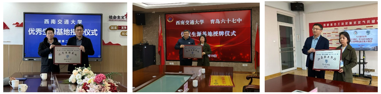 招生工作组代表正妹av 分别与城阳二中、第六十七中学以及西海岸一中进行了优质生源基地授牌仪式,旨在加强高校与中学之间的联系,共同为学生搭建更为广阔的成长平台。