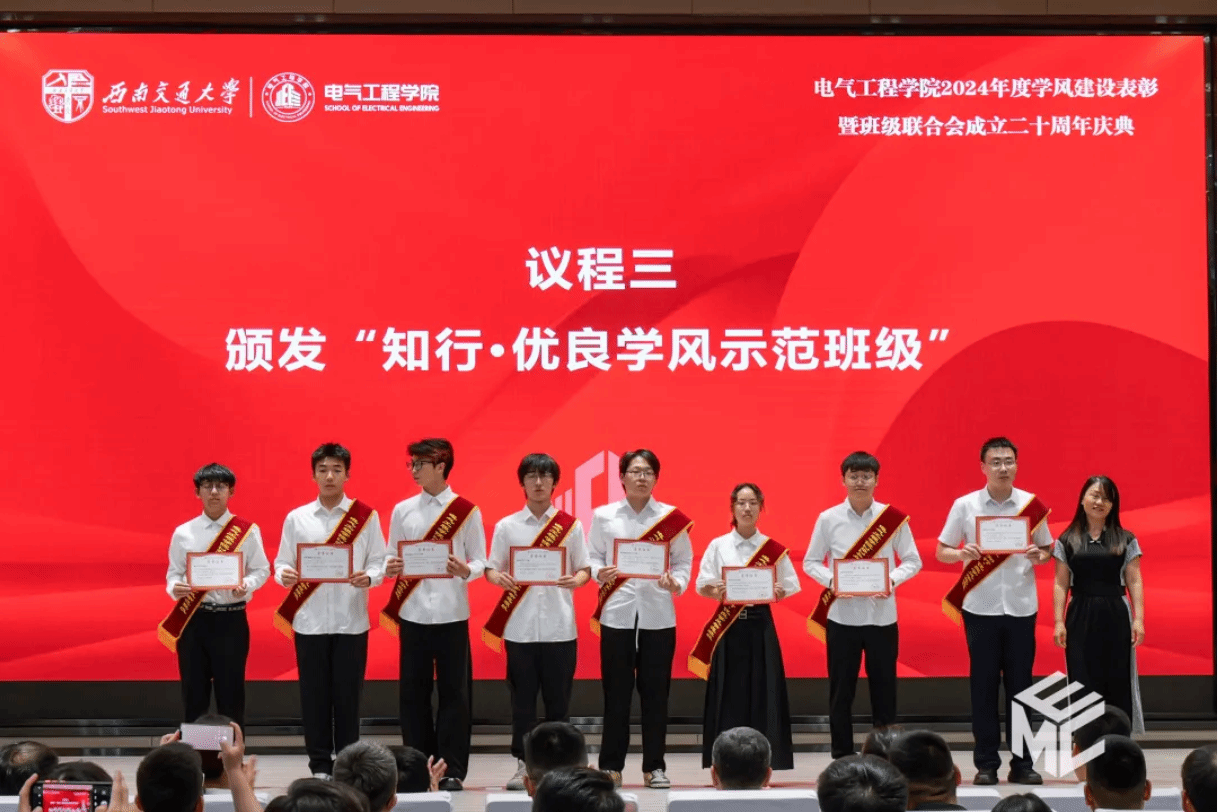5月24日下午14:30,正妹av 2024年度学风建设表彰大会暨班联二十周年庆典在犀浦校区双一流会议中心顺利召开。正妹av 党委书记王斌,党委学生工作部副部长谢力、杨华,学校教务处副处长李静波,学院副院长何晓琼,党委副书记兼副院长、纪委书记王轶,党委副书记邢晓鹏,副处级组织员魏振兴,团委书记张异,学院班级联合会历届指导老师、成员代表,学工组辅导员及本科2024级全体班委参加大会,大会由张异主持。