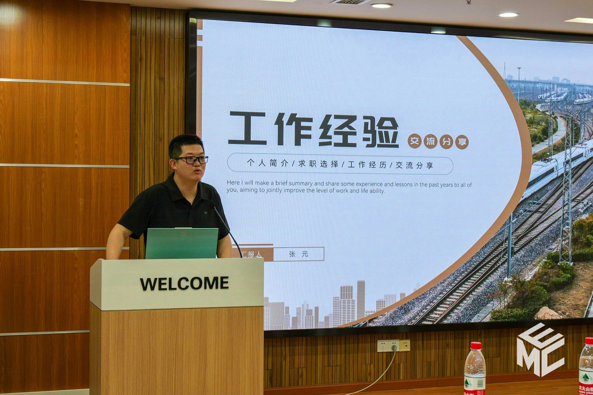 学院2015届校友、成都铁路局供电车间副主任张元结合自己的求职选择和工作经历,分享了自己从一名接触网工成长为管理干部的心路历程,通过自己成长故事深刻诠释了“人民铁路为人民”的服务宗旨。同时也给同学们分享了当前就业形势,希望同学们在面临困境时能够不着急、不躺平,不断提升自己。