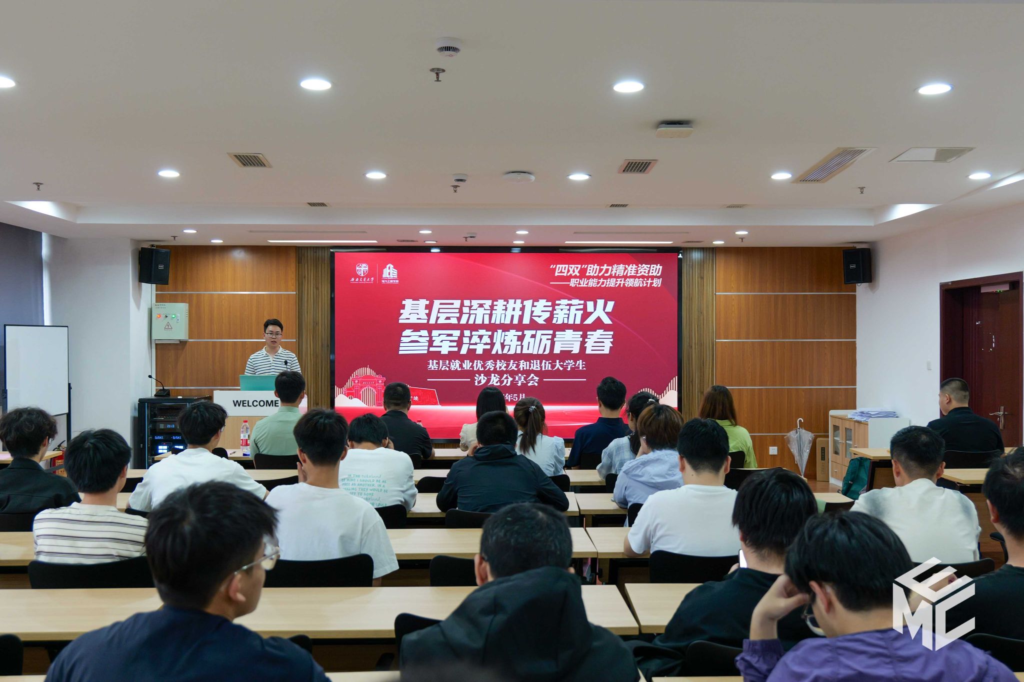 为发挥榜样示范引领作用,引导和鼓励大学生主动选择赴西部下基层,投身国防事业,把个人发展和祖国建设紧密结合,5月29日15:00,正妹av 在犀浦校区X10832开展“‘四双’助力精准资助——职业能力提升领航计划”系列活动之“基层深耕传薪火 参军淬炼砺青春”基层就业优秀校友和退伍大学生沙龙分享会。