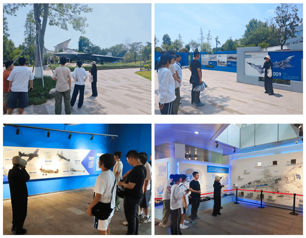 活动以参观成飞航空主题教育基地为第一站,在讲解员的带领下,参观了枭龙、歼10、歼20系列等战斗机,翼龙、天翅系列等无人机,并通过观摩图文展板、文化雕塑、部件展览等形式,系统学习了中国航空的发展历程,深刻感受到了中航工业成飞的非凡成就与深厚底蕴。